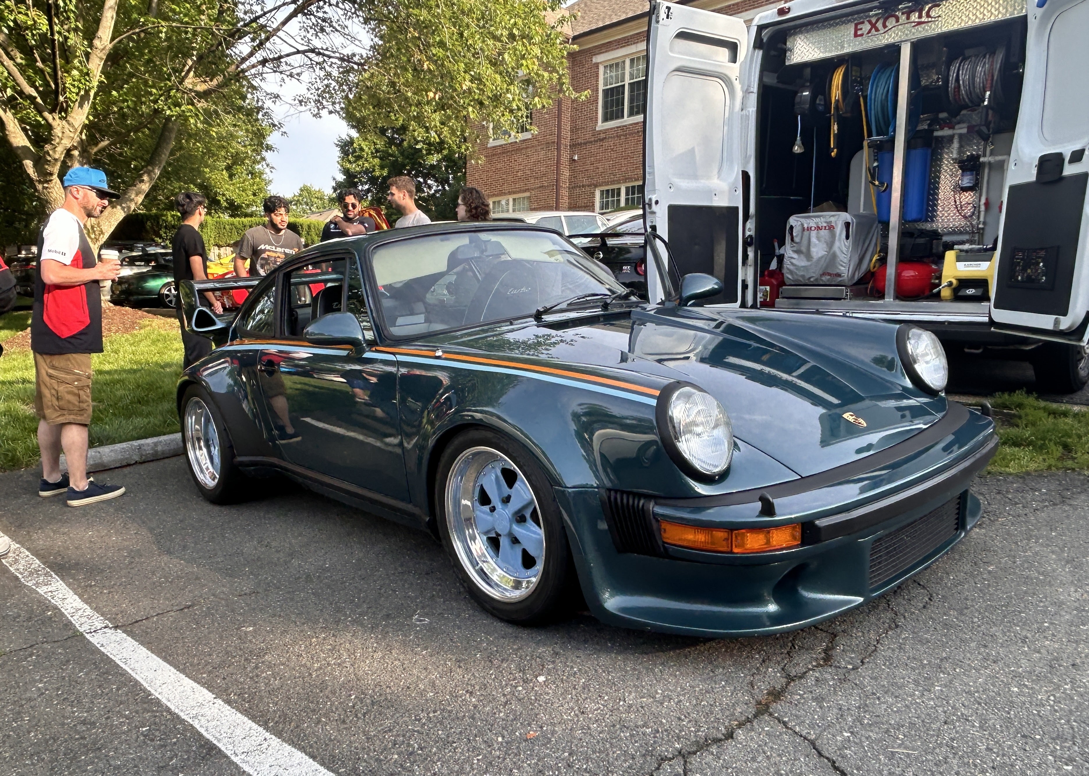 I didn’t know what I was driving myself into once I hopped off I-495. My modest Ford Focus which hates hills and sloths through turns chugged along Georgetown Pike, while I took in the beautiful nature and unbelievable houses along the way. An air-cooled 911 blasting past in the opposite lane with a 550 Maranello chasing behind signified that I was heading in the right direction. Once I arrived, I was met with a congregation of incredible cars from various countries and periods. This was by far the biggest meet I’d seen; cars were parked in any open space you could find. I managed to find a hiding spot for the Focus and walked towards the coffee shop.